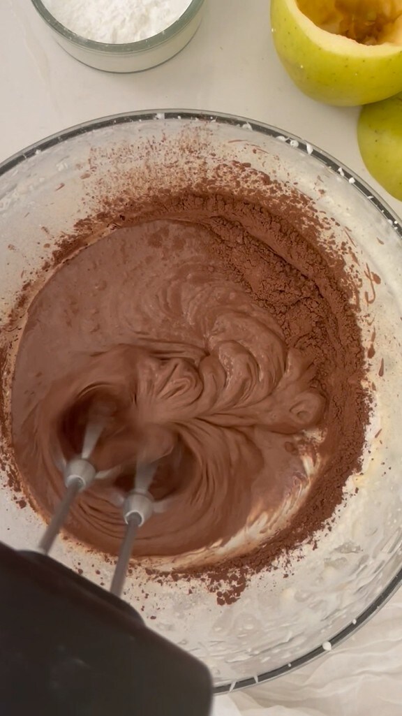 Cocinar en horno precalentado estático a 180° durante 40 minutos. Cortar en cubos, espolvorear con azúcar glas y servir nuestros Brownies de cacao y manzanas sin mantequilla,