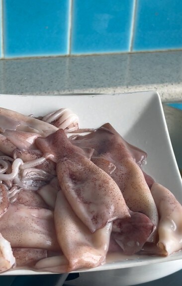 Lo primero que hay que hacer es limpiar muy bien los calamares eliminando las vísceras y enjuagarlos bien. Yo los compré ya limpios.