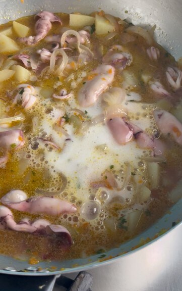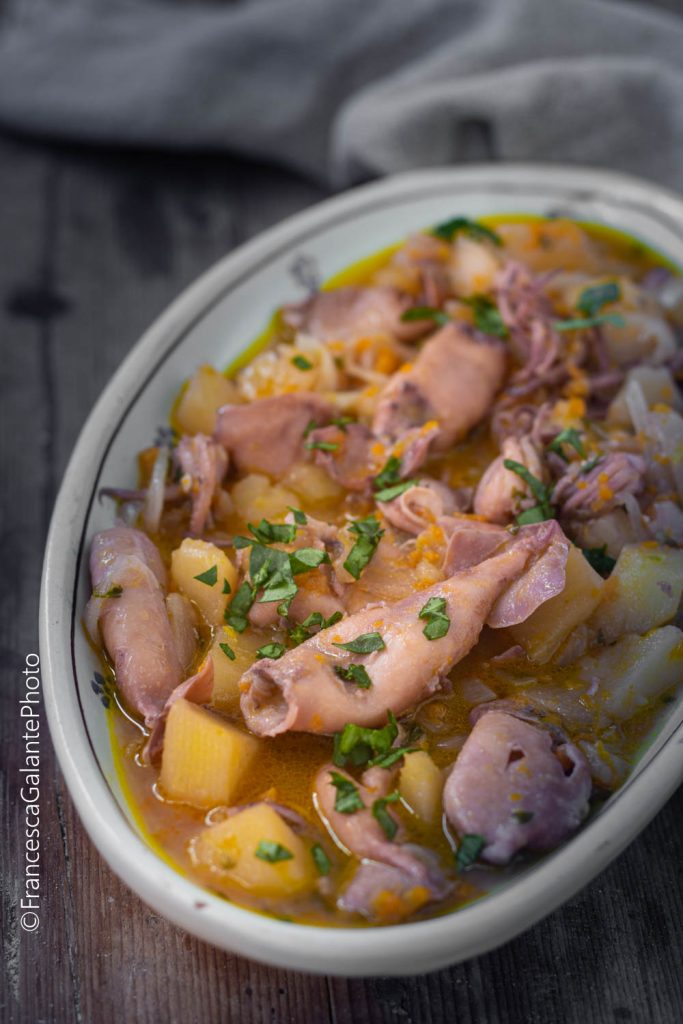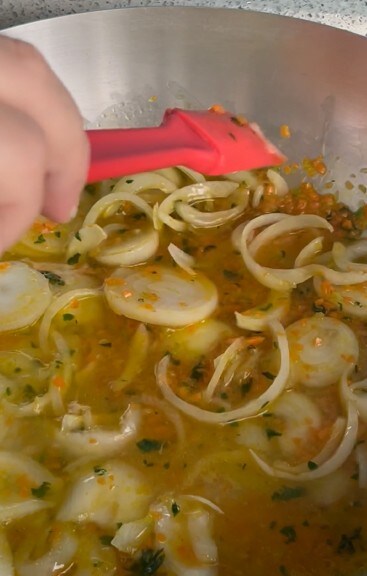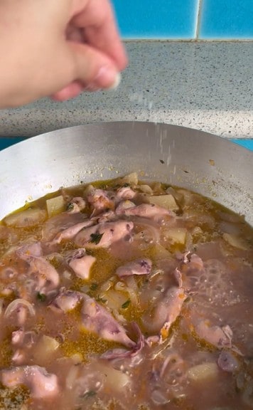 Este es uno de los segundos platos de pescado que más me gusta, Calamares en sartén con patatas y cebollas. La única molestia es la limpieza minuciosa de los calamares. Pero si tienes la posibilidad de que te los limpien en tu tienda de confianza, la receta se vuelve súper rápida. Si quieres, también podría convertirse en un condimento para la pasta que te aseguro que he probado y es fantástica. No sé tú, pero yo como buen murciano amo especialmente los segundos platos de pescado y te lo recomiendo al 100%. Pero si quieres, también puedes probar las Sepias al horno rellenas, receta tarantina o la Ensalada de mar con sepias y mejillones tarantinos