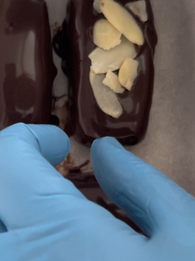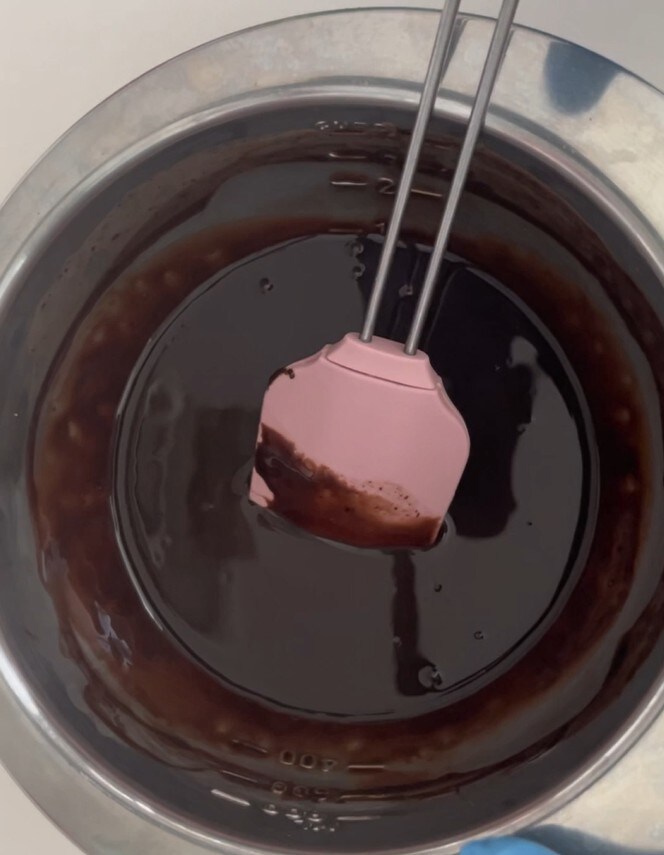 Después de esperar dos horas, tomar nuestros dulces y pasarlos solo de un lado por el chocolate derretido