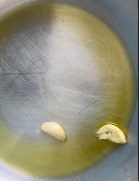 En una olla sofríe dos dientes de ajo con aceite de oliva virgen extra.