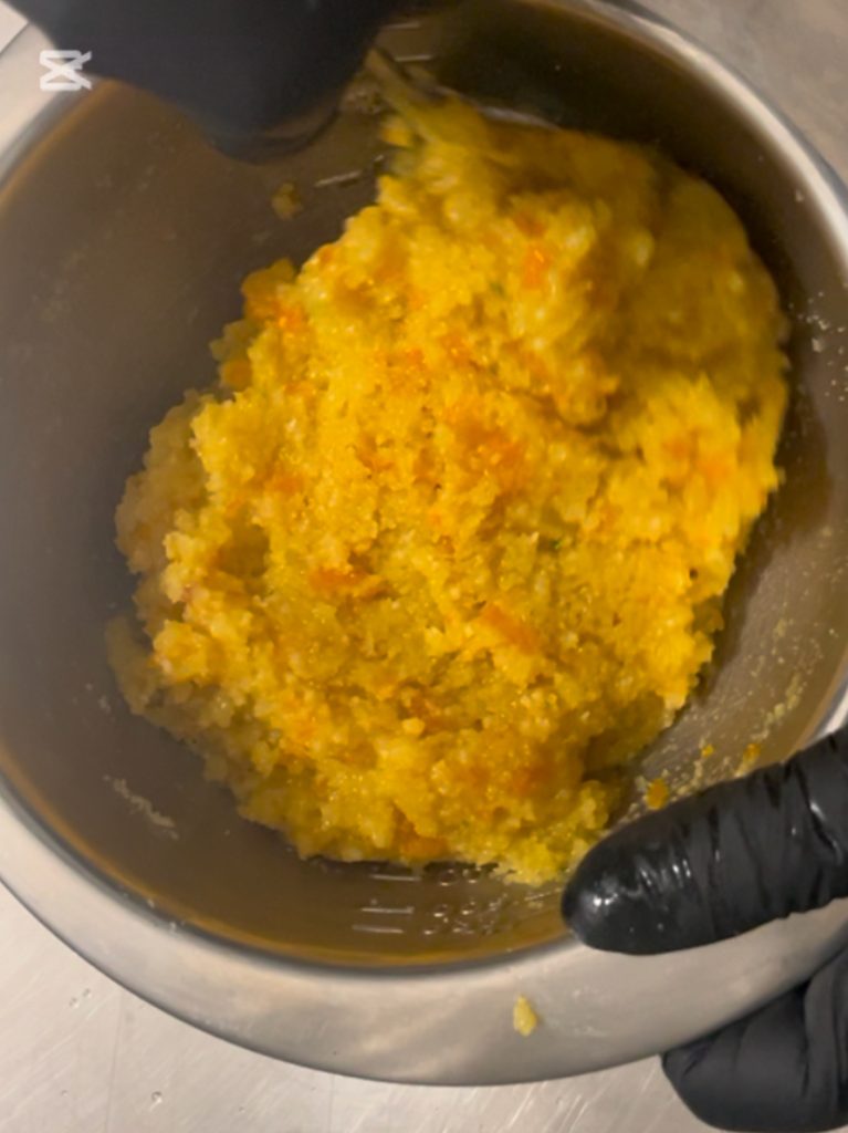 • Cuando aún la pasta de mandarina esté caliente, añadir la harina de almendras