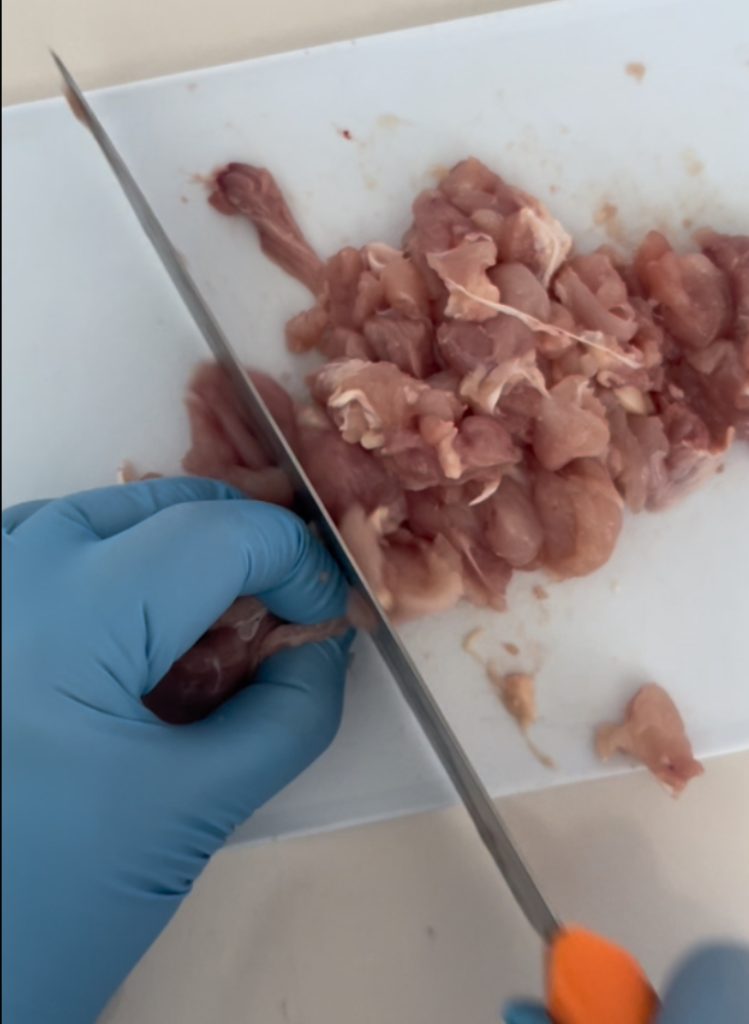 Cortar en trozos el pollo