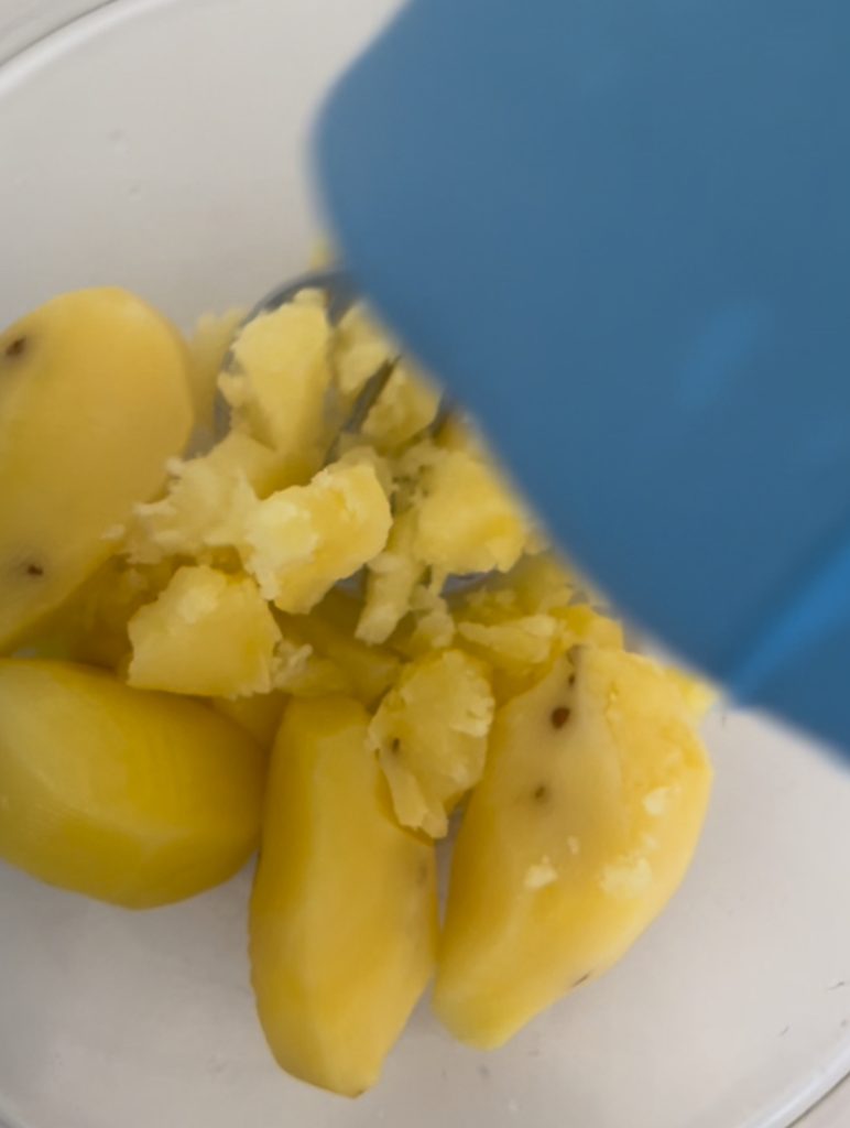 Machacar las patatas hervidas