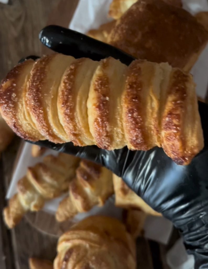 Realizando una tira y enrollándola al molde de acero para cannoli