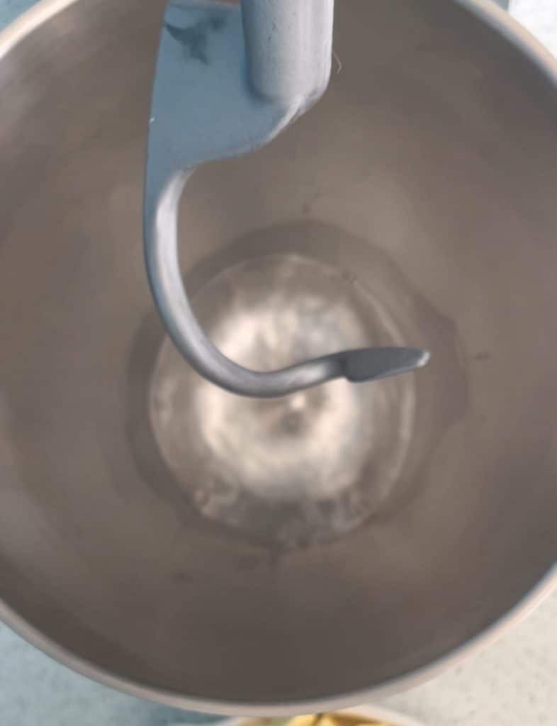 En batidora planetaria o si preferís en un bol, añadir el agua fría de nevera.
