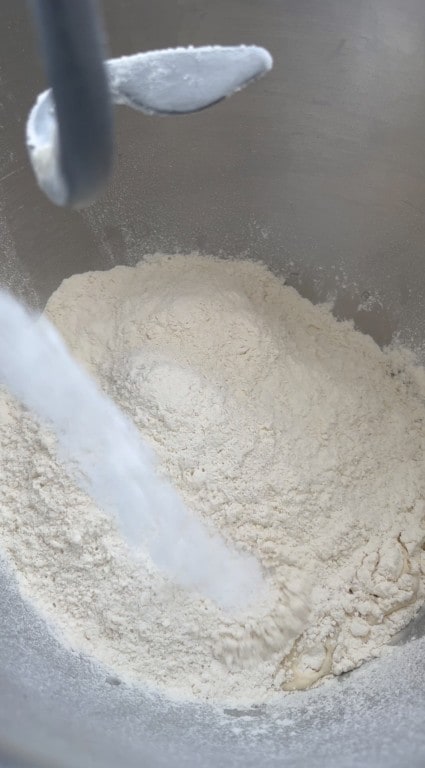 En la amasadora, o si no la tienes, en un bol a mano, verter toda el agua.