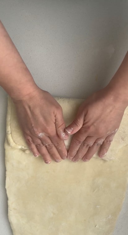 Extender nuevamente el hojaldre. Es muy importante extenderlo siempre con la unión de los lados largos hacia tu derecha