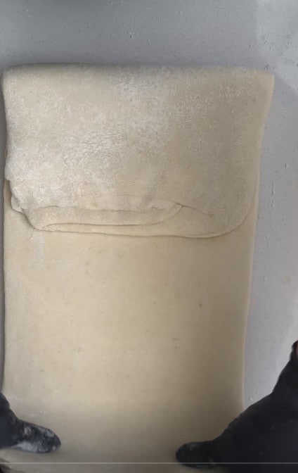 En este punto doblar la masa como si fuera un libro. Obtendremos 4 capas