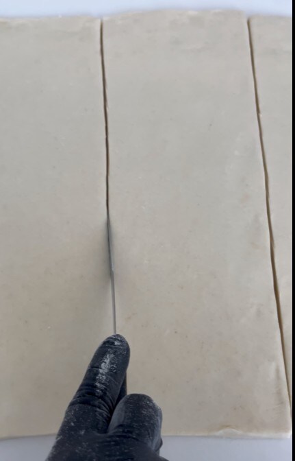 En este punto puedes extender el hojaldre y dejar volar tu imaginación como quieras. Perfecto para pasteles y cannoli o sfogliatelle. Yo he extendido el hojaldre y cortado a lo largo