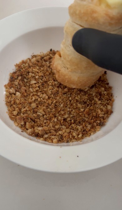 Para los cannoli realicé tiras de hojaldre y las envolví en el molde para cannoli.