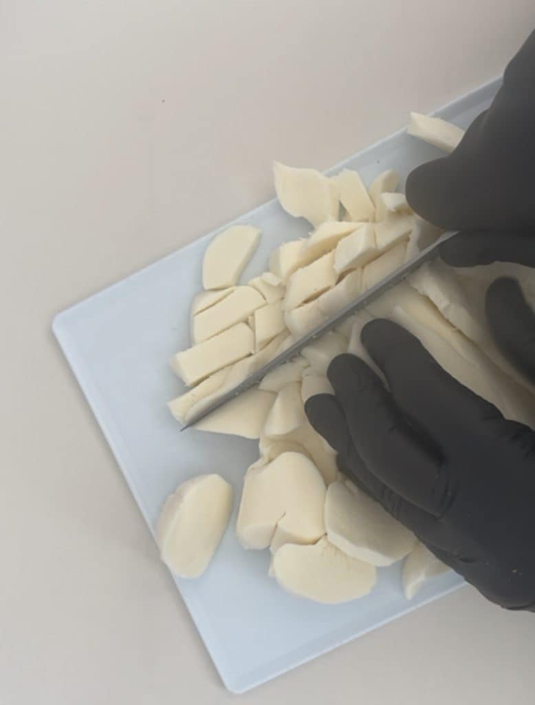 Cortar la mozzarella en trozos.