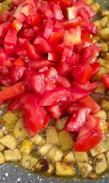 Cuando la berenjena haya absorbido bien el aceite y esté suave, añadir los filetes de anchoas