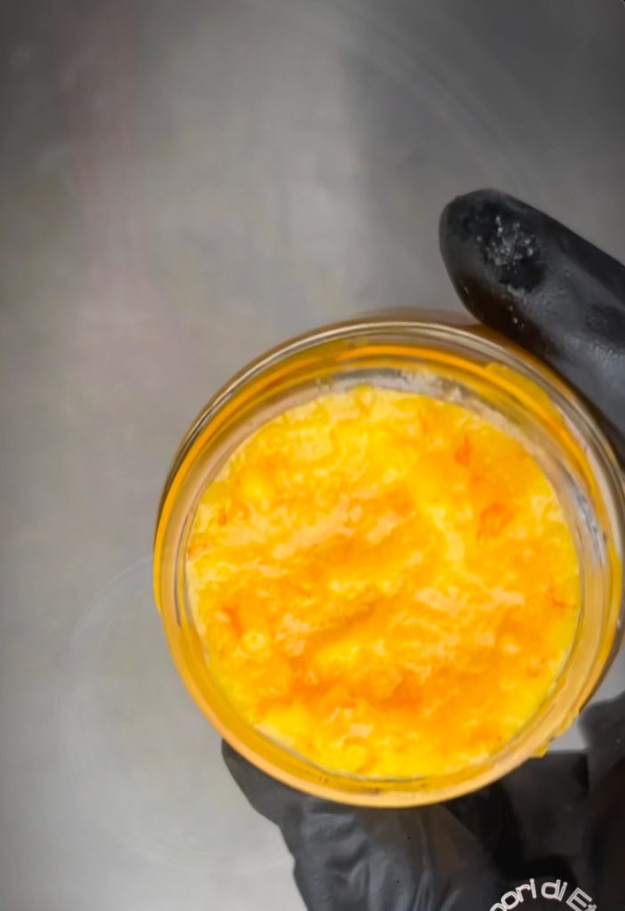 Dejar enfriar boca abajo. Nuestra pasta de naranja está lista para ser utilizada en nuestras masas. Yo con esta cantidad la uso para aproximadamente 40 preparaciones. Se conserva en la nevera durante mucho tiempo.