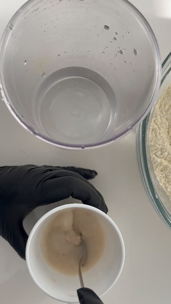 Verter parte del agua en un vaso y disolver la levadura.