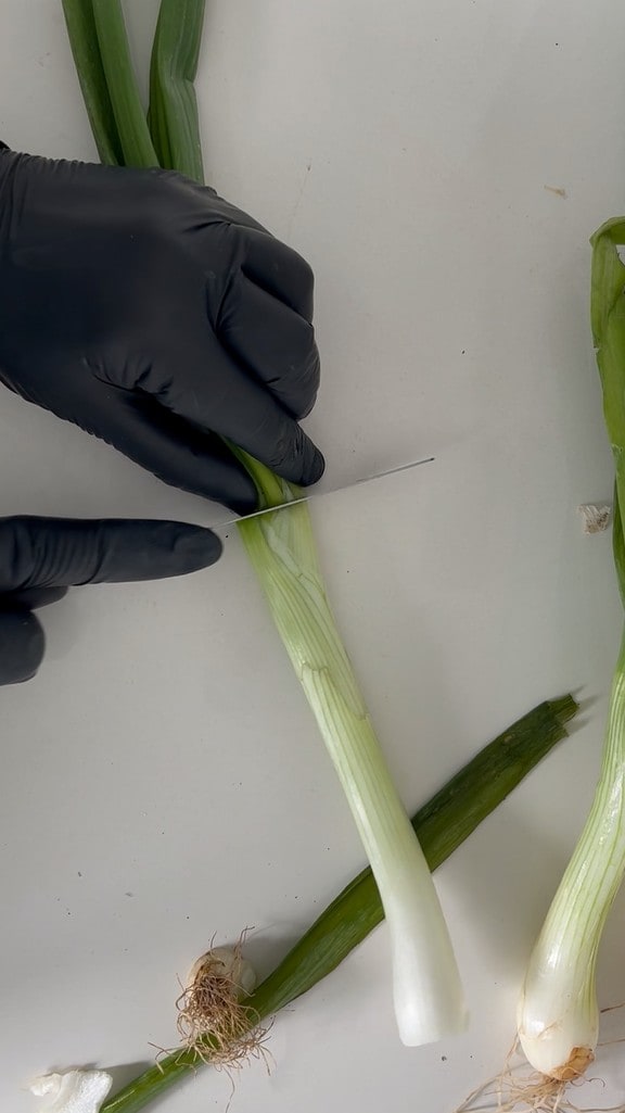 En este punto, limpiar las cebolletas