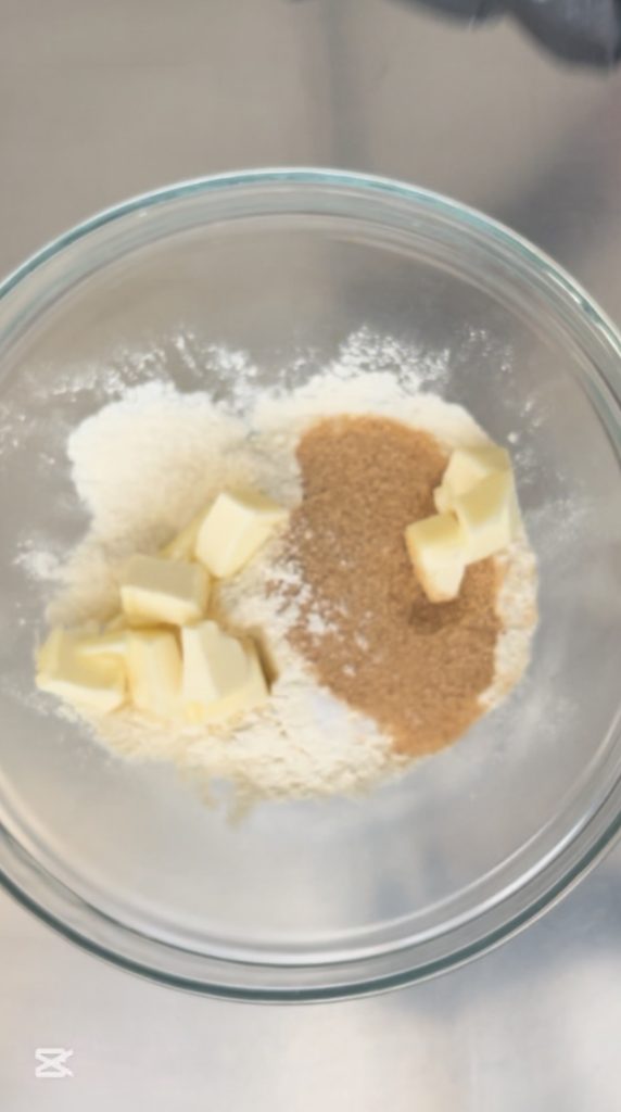 Comenzamos a preparar el crumble. En un bol, introducir la harina