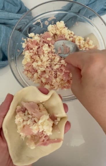 En un bol, preparar el relleno picando la mozzarella y el jamón cocido.
