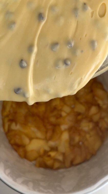 Hoy quiero compartir con vosotros una receta que estoy segura repetiréis a menudo la TARTA CON MANZANAS CHOCOLATE Y MASCARPONE. Con este dulce os aseguro que nunca fallaréis, ya sea un día de fiesta, un simple domingo o cualquier desayuno, seguirá siendo para mí el dulce perfecto para todos los momentos del día. No es más que una tarta invertida de manzanas muy suave y deliciosa con la adición de mascarpone y sin mantequilla. Naturalmente, yo he elegido las manzanas como fruta, pero vosotros podéis elegir cualquier fruta que deseéis, el resultado no cambia en absoluto.