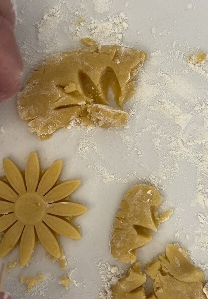 Con el resto de la masa y el molde para galletas formar nuestras decoraciones. Yo tenía la forma de margarita