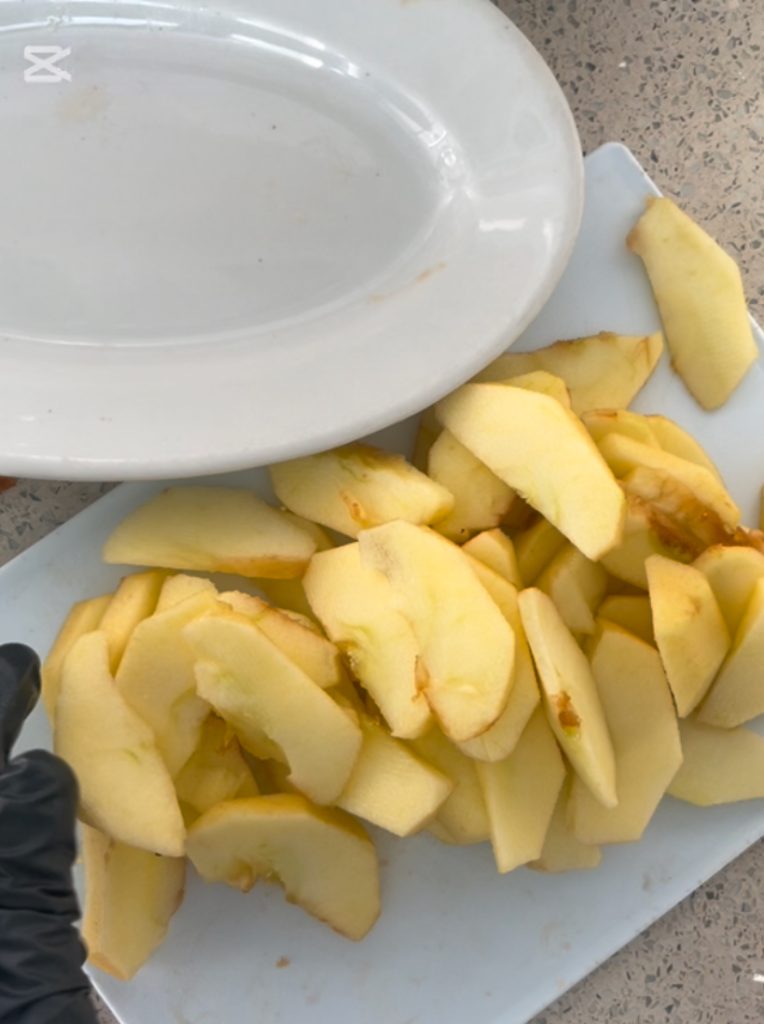 Corta primero las manzanas en rodajas finas