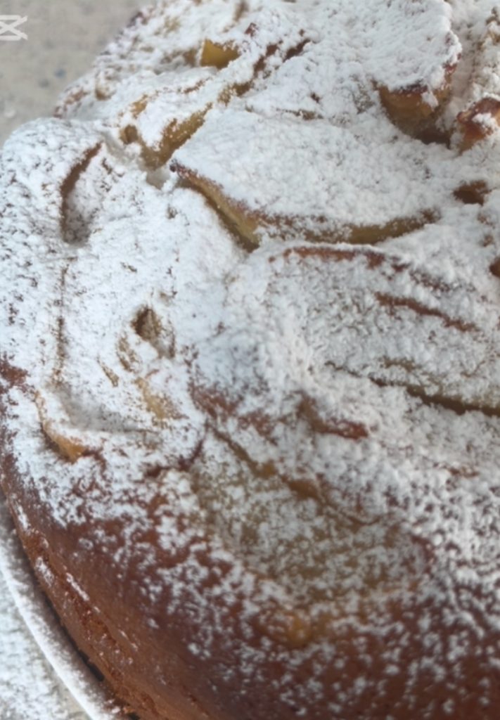 Espolvorea con abundante azúcar glas y nuestra tarta de manzana con yogur súper esponjosa está lista para disfrutar