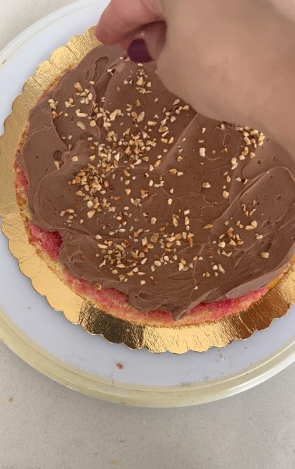 Dejarla en la nevera 2 horas y disfrutar de nuestra Tarta deliciosa de dos sabores avellana y pistacho