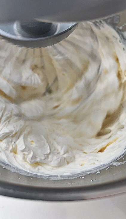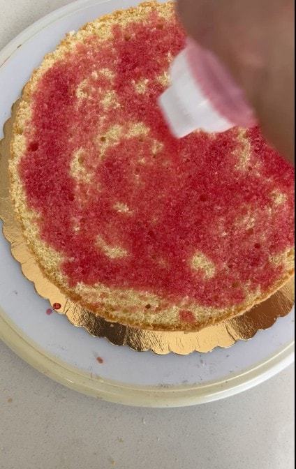 En el resto de la nata montada añadir unas gotas de colorante rojo hasta obtener una coloración rosa