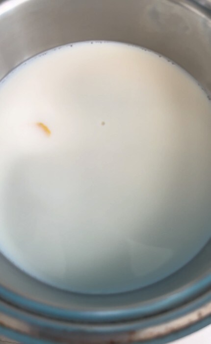 Mientras tanto, calienta la leche con una cáscara de limón, solo la parte amarilla