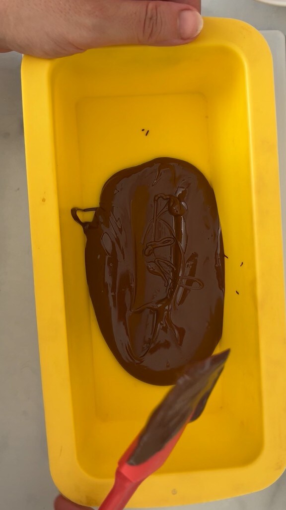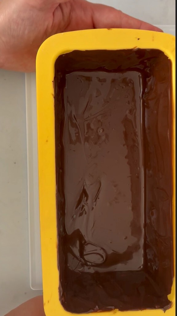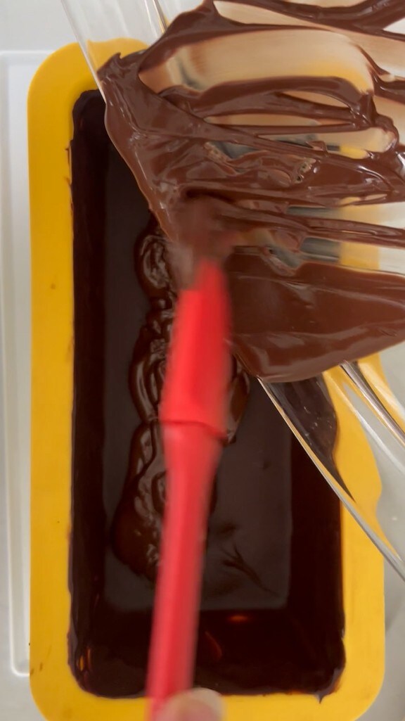 Con una espátula o si preferís con un pincel cubrir todo el molde con el chocolate