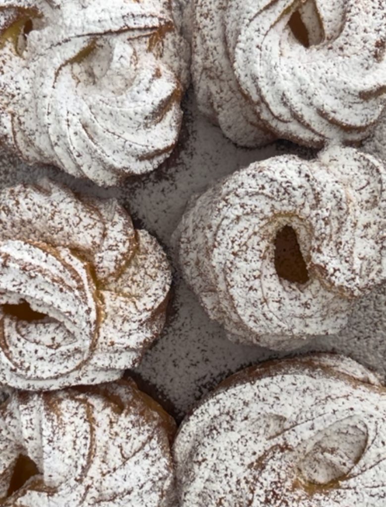 Terminar con guindas. Nuestras zeppole al horno y fritas están listas para ser disfrutadas.