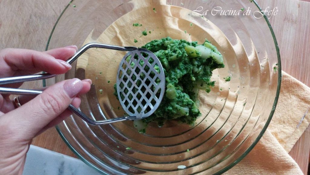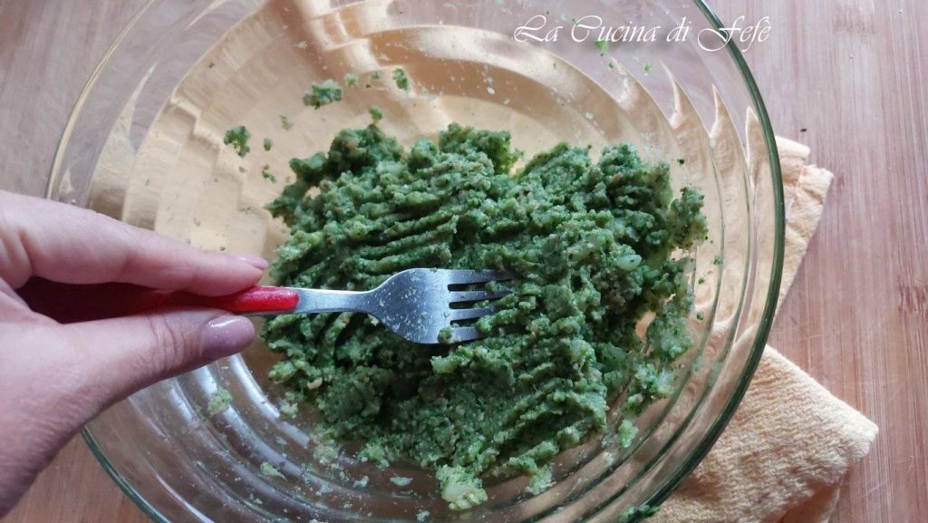 Trabajad rápidamente todos los ingredientes, aplastando con un tenedor hasta obtener una mezcla homogénea, compacta y trabajable. En caso de que esté todavía blanda, podéis añadir una cucharada de pan rallado a la vez.