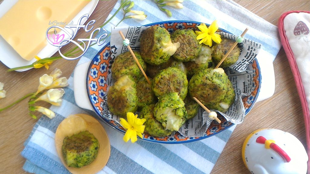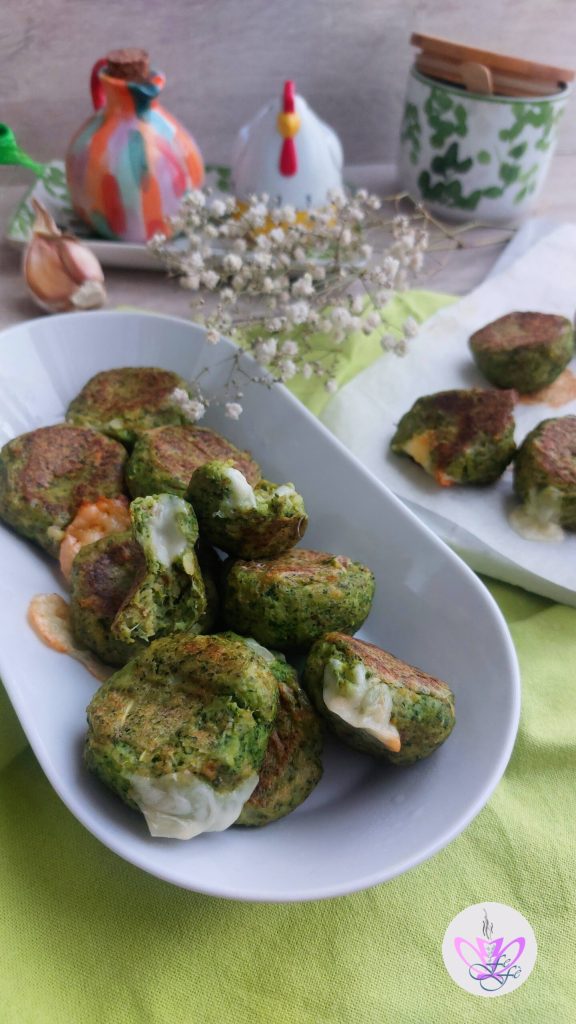 La semana pasada, cuando fui a comer a casa de mi madre, me recibió con un banquete digno de una reina. Aprovechando que hacía mucho tiempo que no nos veíamos, este fue su modo de mostrarme su felicidad. ¿A vosotros también os miman así vuestras madres? Bueno, de todas formas, entre las muchas propuestas de su mesa, nos dimos un banquete sobre todo con sus albóndigas de brócoli, ¡realmente deliciosas e irresistibles! La verdad es que, teniendo muchas recetas dedicadas a las albóndigas (por mencionar algunas, las albóndigas de mijo con coliflor, tomates secos y alcaparras o las albóndigas de pollo y aguacate), estaba segura de haberlas preparado en el pasado también, pero luego descubrí que entre las muchas variantes, la de brócoli no estaba en mi repertorio. Así que aquí estoy con esta versión con un corazón super fundente de queso que se derrite. Los brócolis son además vegetales muy saludables y ricos en propiedades beneficiosas. Como a menudo repito, toda la familia de las coles se destaca por ser rica en fibra, vitaminas, minerales y antioxidantes. Y los brócolis no son una excepción, al contrario, están entre los primeros en tener este mérito. Estas albóndigas serán por lo tanto una manera deliciosa y genuina de hacer que todos disfruten de las verduras, especialmente los niños, ¡pero no solo! Podréis servirlas sobre una cama de ensalada fresca como segundo plato en estilo vegetariano o como finger food en un buffet informal, durante un aperitivo o como entrante sabroso. Os aseguro que desaparecerán rápidamente, ¡así que os aconsejo doblar las cantidades y prepararlas vosotros también!