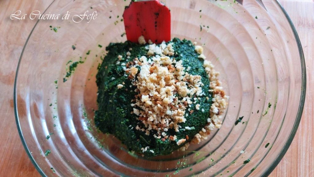A mí me gusta agregar finalmente 2 cucharadas de pan rallado casero más grueso para dar más cuerpo a la mezcla, pero este paso es absolutamente opcional. Pon en la nevera a enfriar por 15′.