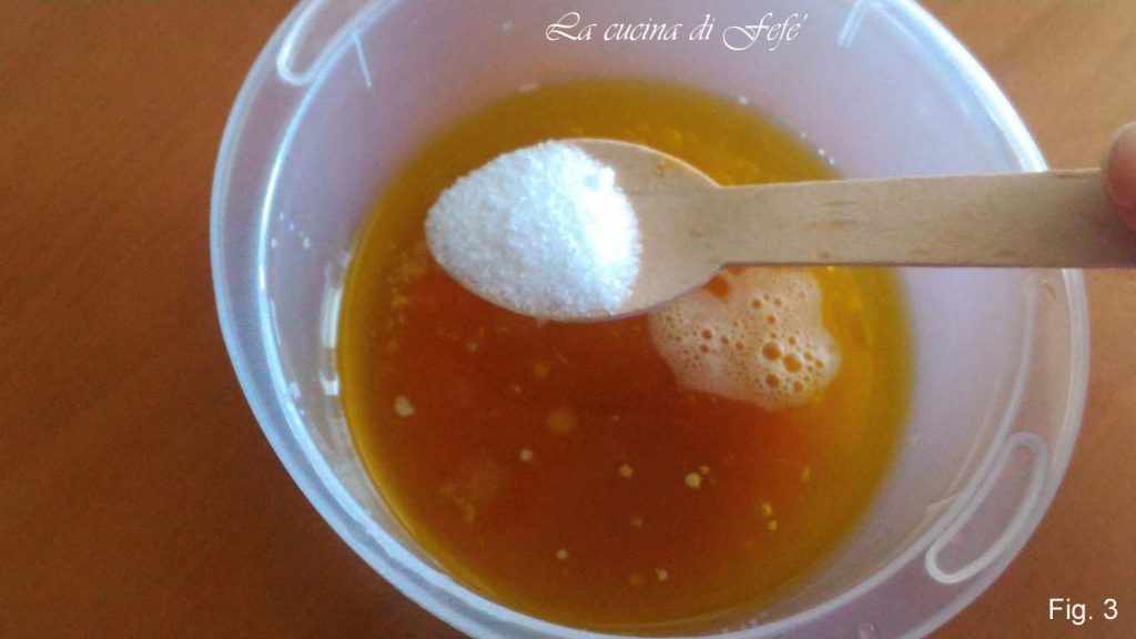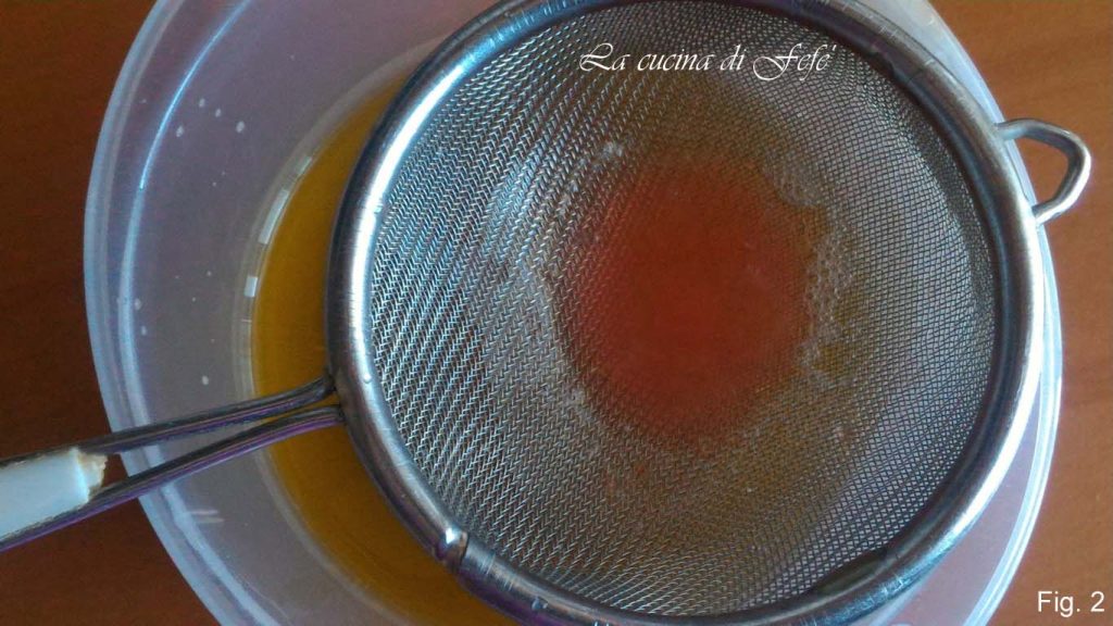 Emulsiona el aceite con el zumo de naranja filtrado con la ayuda de un colador (fig. 2).