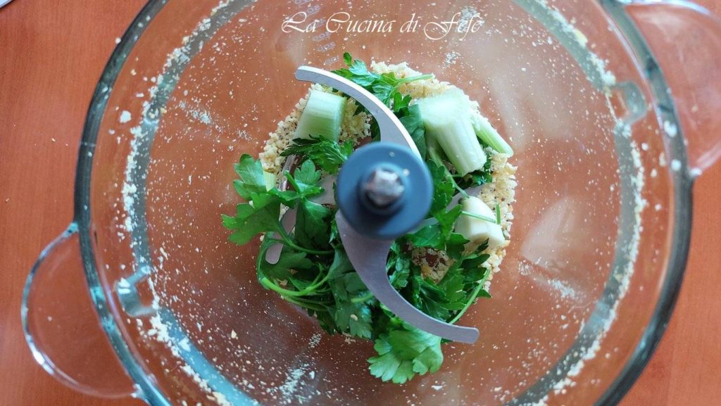 Ahora añade también las hojas de perejil, las barbitas de hinojo reservadas y medio diente de ajo.