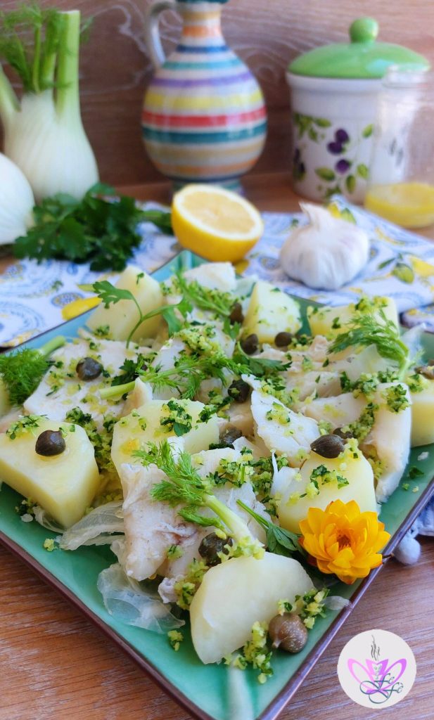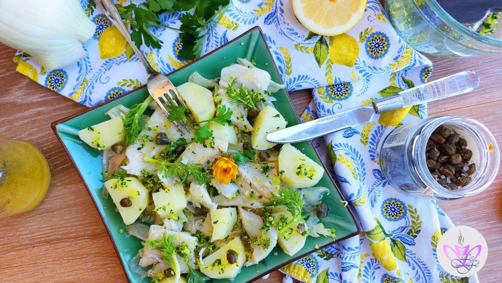 Y voilà… ¡el bacalao con carpaccio de hinojo y patatas está listo para degustar!