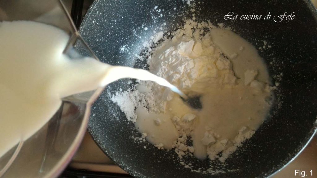 En una cacerola disolver a fuego apagado el almidón de maíz con un poco de leche fría.