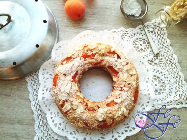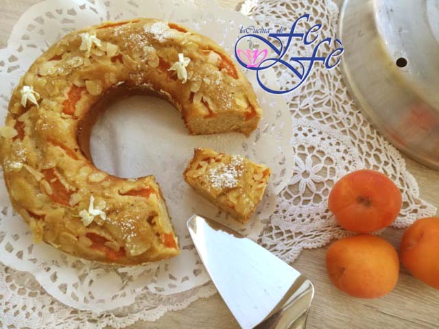 Cuarta cita con mi mágico Hornillo Versilia! Ahora realmente lo disfruto y también me divierto experimentando, sin más miedo como antes de hacer un desastre si no sigo estrictamente las dosis de las recetas suministradas. Ahora, en cambio, me lanzo con naturalidad en dosis e ingredientes específicos, sabiendo que siempre será un gran éxito, sí, porque cocinar los pasteles (y no sólo) en este hornillo, es cada vez realmente sorprendente; abres la tapa y como por arte de magia sacas del «sombrero» delicias inimaginables, pero no porque sean simplemente dulces, sino porque saben a lo bueno, a hogar, a cariño, a recuerdos pasados. ¡Esos olores, esos aromas ya vividos, esos sabores genuinos que con el horno eléctrico sólo puedes esperar sin nunca obtener! Yo me siento así cada vez que me acerco a este maravilloso instrumento de cocina, me siento un poco niña, cuando su abuela también horneaba deliciosos pasteles y le sonreía dulcemente, mientras le cortaba una buena rebanada solo para ella. Y ahora que soy adulta y ella ya no está, todavía me parece sentirla a mi lado, verla pasar por mi cocina y llamarme con un tono suave y cariñoso. ¡Ella seguramente habría aprobado este bizcocho hecho con harina de almendras y trocitos de albaricoques perfumados! Un bizcocho dulce y ligero, suave como una nube y lo suficientemente húmedo como para no desear acompañarlo con nada más. ¡Dulce desayuno a todos!