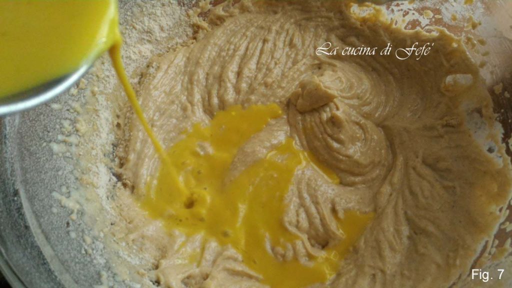 • Continuad trabajando con las batidoras y añadid poco a poco las harinas con la levadura tamizadas junto con la sal (fig. 6).