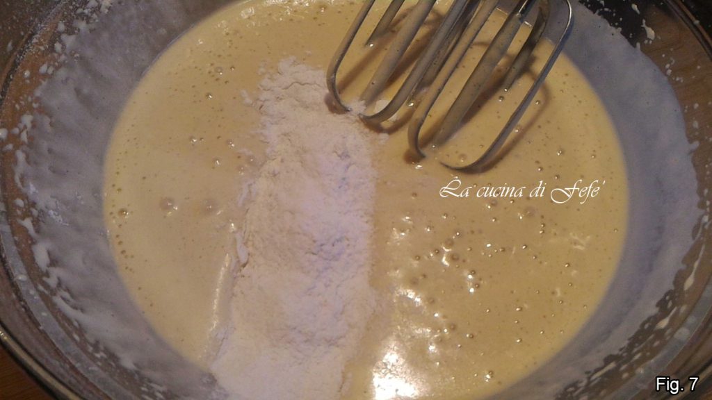 • Incorpora la harina de arroz tamizada y el almidón poco a poco (fig. 7).