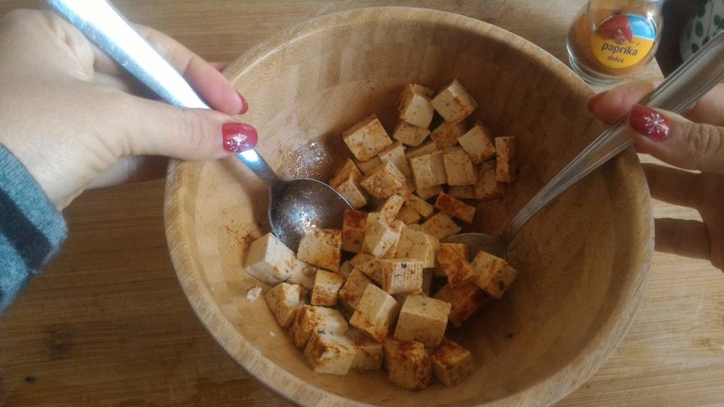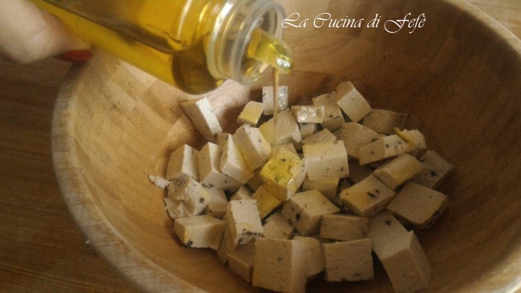 🟣 * Yo compré el tofu a las hierbas en Lidl Italia, pero en caso de que no lo encuentres, también estará bien el tofu al natural. En tal caso, añade a la marinada una mezcla de hierbas aromáticas al gusto entre albahaca, perejil, menta y romero.