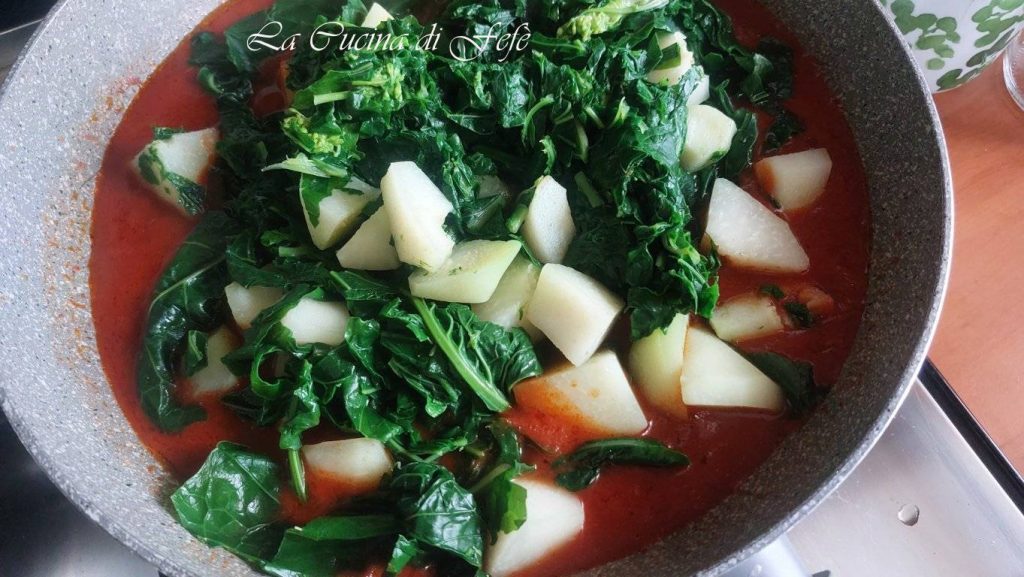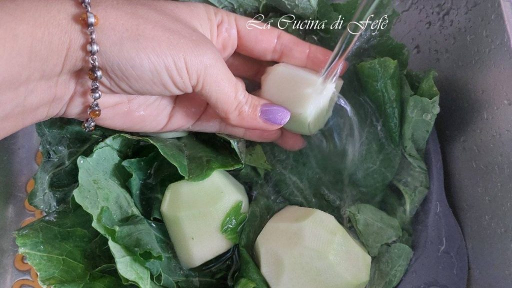Dada la época del año, estoy haciendo acopio de la verdura más conocida en mi zona y más apreciada tanto por sus propiedades beneficiosas como por su sabor: el cavolo trunzu de Aci, es decir, el colinabo de Acireale. Esta verdura, con características únicas, se puede disfrutar tanto cruda, como en la ensalada de cavolo trunzu, como cocinada. En el primer caso, la verdura se corta en juliana y se sazona con aceite, sal, pimienta y vinagre o, en sustitución de este último, jugo de limón. En el segundo caso, a menudo se utiliza como ingrediente para la famosa pasta co’ cavolo trunzu o la pasta con sardinas, o bien guisada (stufateddu) como simple guarnición. Esta última versión es precisamente la receta de hoy y, si sigues mis consejos, llevarás a la mesa un plato de la tradición culinaria siciliana. Servido humeante con un buen chorrito de aceite en crudo y algunas rebanadas de pan rústico tostado o crujiente a gusto, será perfecto para cualquier ocasión. Podrás, de hecho, combinarlo con tus platos principales de carne a la brasa o como condimento para la famosa scacciata siciliana. Un plato vegetariano con un sabor robusto e intenso, capaz de reflejar genuinidad, calidad y autenticidad. Aquí mojar el pan es obligatorio o, como diríamos nosotros, «è bonu per abbagnarici ‘u pani» !