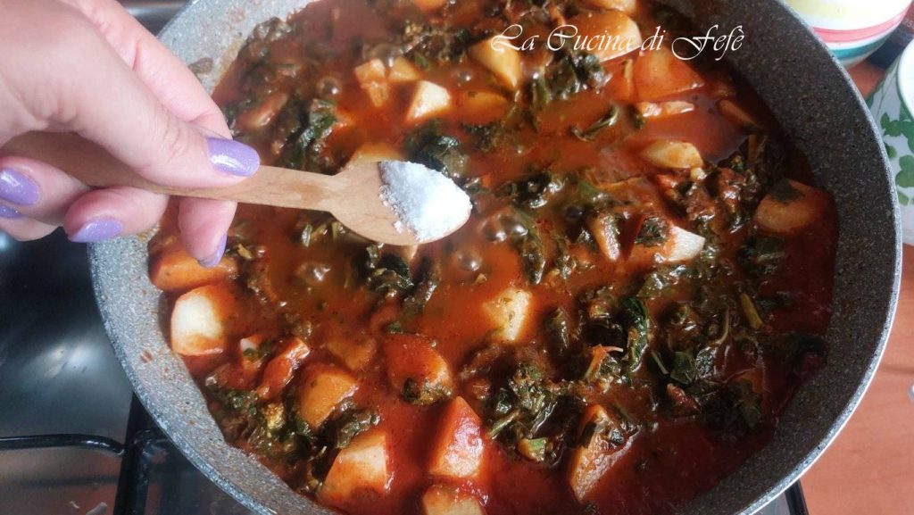 En este punto, elimina el diente de ajo y añade los colinabos a la salsa, dejándolos impregnar bien.