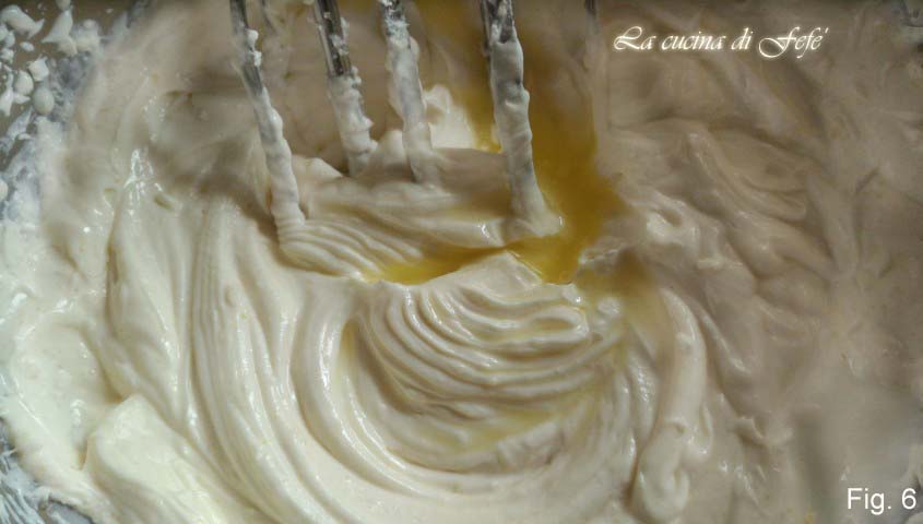 Añadidlas a la mezcla y continuad mezclando. Montad finalmente la nata hasta que esté compacta y consistente y agregadla a la crema de queso, utilizando una espátula, con movimientos lentos de abajo hacia arriba para no desmontarla.