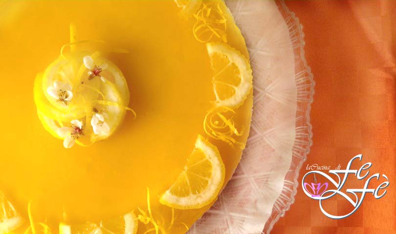 Poned la cheesecake de nuevo en la nevera durante 2 h. Transcurrido este tiempo, preparad la cobertura de limón, disolviendo en un cazo a fuego lento el agua con el azúcar, el zumo del limón y su cáscara rallada. En cuanto el azúcar se haya disuelto, añadid el almidón tamizado y removéis hasta que la gelatina se haya espesado. Apagad el fuego y añadid un poco de colorante alimentario amarillo. Dejad que se enfríe. Entonces, verted la gelatina sobre la cheesecake y niveladla.