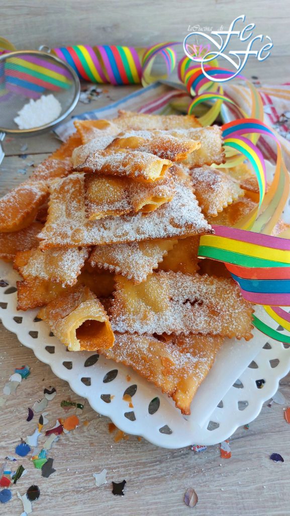 👉 Consume las chiacchiere fritas recién hechas, pero si sobran, puedes conservarlas durante 2-3 días en una bolsa de papel o un recipiente con tapa hermética. Las chiacchiere al horno, en cambio, se mantienen durante más días con el mismo método de conservación.