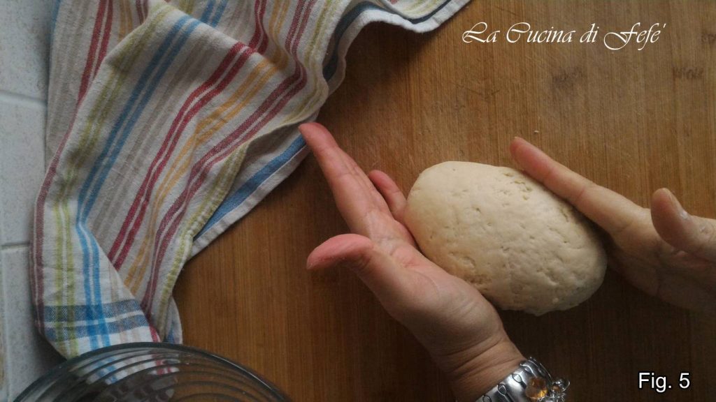 • Deja reposar 10′ a temperatura ambiente cubierto con el mismo cuenco donde lo trabajaste o con un paño, luego divídelo por la mitad con la ayuda de una rasqueta.