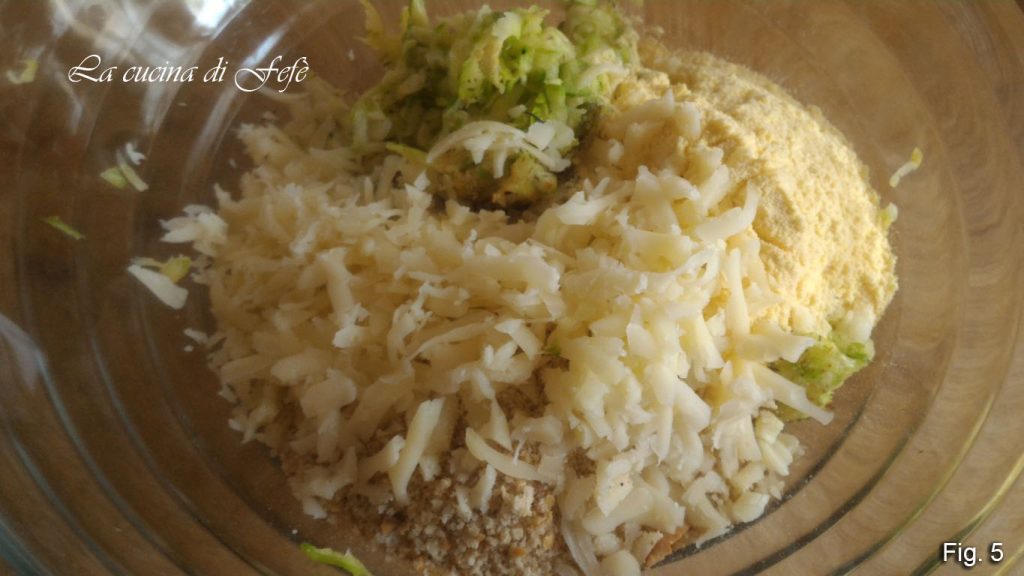 • Agregad también la harina de maíz fina, el pan rallado y la provola rallada (fig. 5).