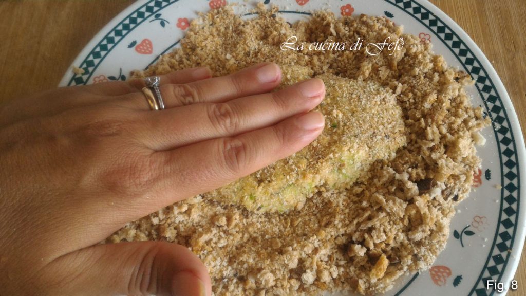 • Luego pasadlas por el pan rallado, previamente aromatizado con la cúrcuma y la cucharadita restante de mostaza (fig. 8).